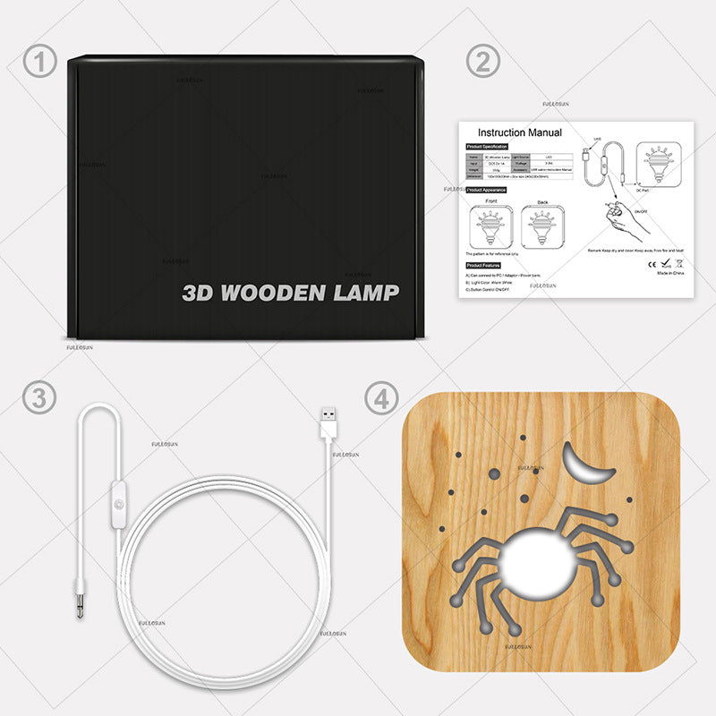 Product accessories: wooden night light +1 USB cable +1 manual +1 (color box packaging)