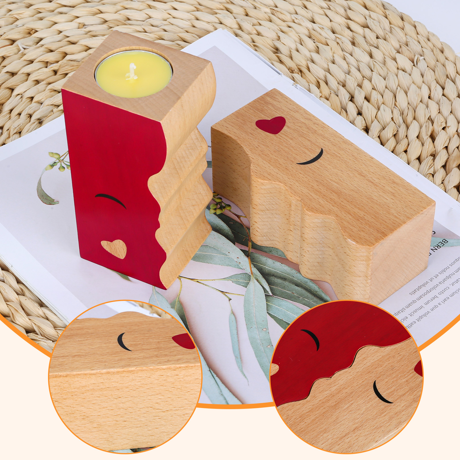 2PCS Set Kissing Candle Holder For Him Him Best Friend Romantic Anniversary Gift For Women Girls Wooden Candle Holder